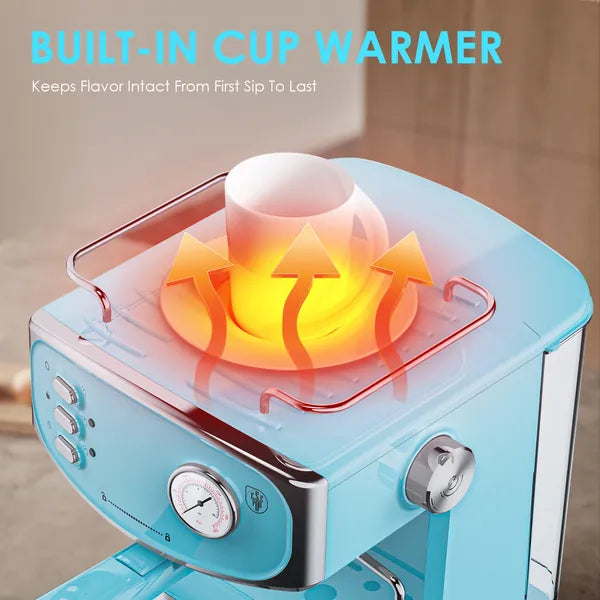 A 20-bar pressure system ensures optimal extraction, allowing water to pass evenly through finely ground coffee to produce balanced flavor, crema formation, and body. The thermally stable heating system reaches operating temperature efficiently and maintains consistency between shots, reducing temperature fluctuation during back-to-back brewing.