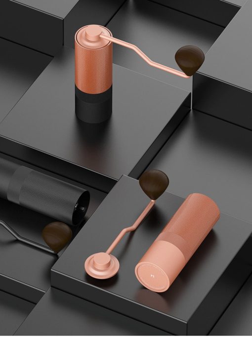 A manual grinding mechanism encourages a slower, more deliberate pace.